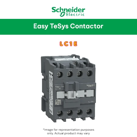 EasyPact TVS contactor 3 poles for motor applications up to 38A 18.5kW@440V. It provides a 220V 50Hz AC coil, 1NC built-in auxiliary contacts, power and control connections by screw clamp terminals. 56mm width for standard operating rates up to 1800 cycles per hour. It procures standard reliability and durability with 0.9 Mcycles electrical durability AC-3 and 8 Mcycles mechanical durability. It can cover -5°C to 55°C working temperature and mounted by DIN-rail, No derating up to 3000m altitude. Multi-standards certified (IEC, CCC, EAC) and Green Premium compliant (RoHs/Reach).
